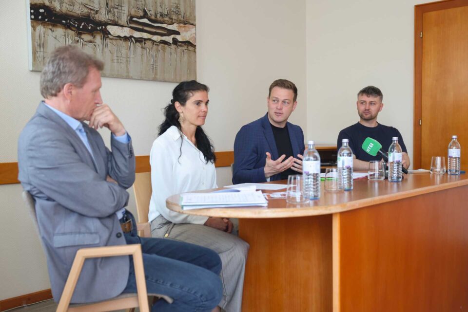 Pressekonferenz mit Umwelt- und Klima-Landesrat Stefan Kaineder, Bürgermeisterin Mag.a Monika Weberberger-Rainer, Ausschussobmann für Nachhaltigkeit Mag. Reinhold Huber und Reinhard Brix (Klimabündnis OÖ)