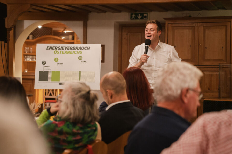 Die Themenvielfalt der offenen Wirtshausdiskussion reichte von der globalen und regionalen Energieerzeugung und -nutzung über Bodenschutz und Flächenwidmung bis hin zu Wasserschutz und der nachhaltigen Nutzung heimischer Ressourcen. Aber auch grundsätzliche Fragen rund um Gemeinde- und Landespolitik, Demokratie und Gesellschaft als auch die Bedeutung von Heimat fanden Platz in den abendfüllenden Heimatgesprächen. „Die wichtigen Themen in Oberösterreich sind nicht nur, wie man eine PV-Anlage auf das Dach bekommt. Die Leute bringen Themen ein, die sie darüber hinaus beschäftigen“, so Kaineder, der sich einzelne Punkte aus der Diskussion auch gleich in die tägliche Arbeit mitnehmen will: „Wenn Probleme zur Sprache kommen, für die ich politische Lösungen erwirken kann, dann nehme ich mir die natürlich vom Wirtshaus- auf den Schreibtisch mit.“